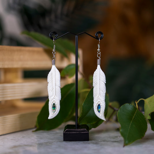 Bone Feather with Pāua Earrings